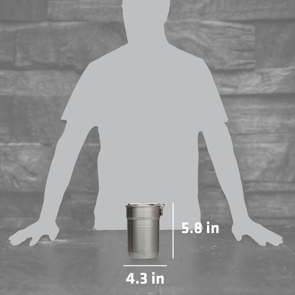 Enjoy delicious hot food straight from the campfire or camp stove with this tidy yet rugged cook kit. The stainless steel pot with locking handle is great for brewing coffee or heating soup. The vented lid even doubles as a strainer. When it’s time to eat, two insulated cups allow for sharing. To clean up, stack everything neatly inside to store. A slim profile means it can even fit inside your backpack webbing.